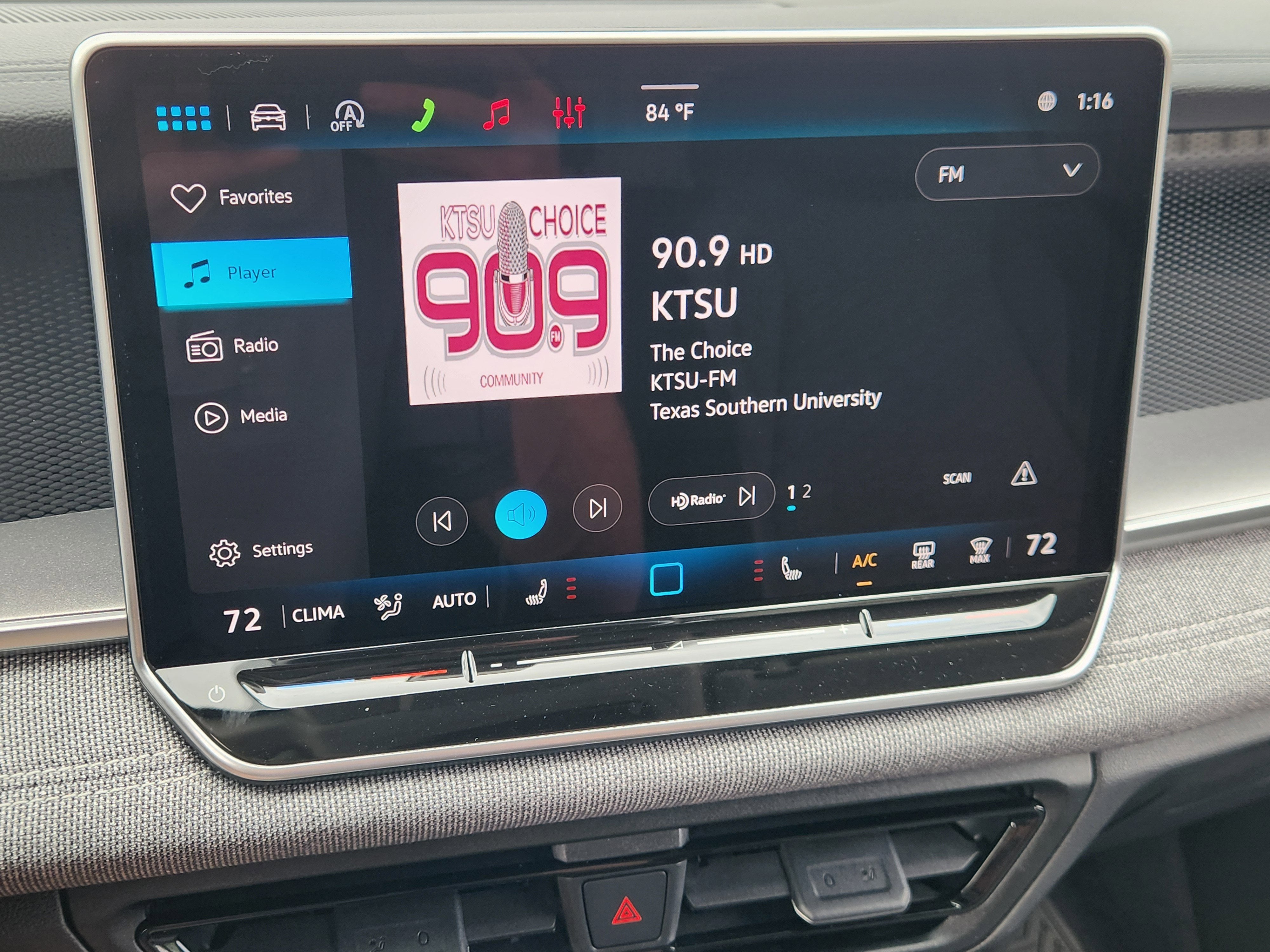 - MIB4 Composition Media Touchscreen w/AM/FM Radio -inc: WMA/MP3/FLAC player w/USB, 12.9" touchscreen multi-function center display w/backlit sliders, voice control, 6 speakers + center speaker (7 speakers total) sound system, capability for in-vehicle 4G LTE enabled Wi-Fi (cellular data plan required; includes limited trial), capability for connected vehicle services (capabilities for services vary; requires enrollment or subscription), Bluetooth® connectivity (for compatible devices), SiriusXM w/360L (w/3-month free trial subscription; 360L services require acceptance of Car-Net terms), App-Connect smartphone integration (w/Apple CarPlay, Android Auto and MirrorLink) via USB, wireless App-Connect smartphone integration (for compatible devices) w/multi-phone pairing capability, 45W fast charging (for compatible mobile phones and accessories) via USB in both rows and Qi wireless inductive charger, cooled, up to 15W (for compatible mobile phones and accessories) All connected vehicle services are subject to terms and limitations. Some services require a paid subscription. See dealer or vw.com/connected for important details.