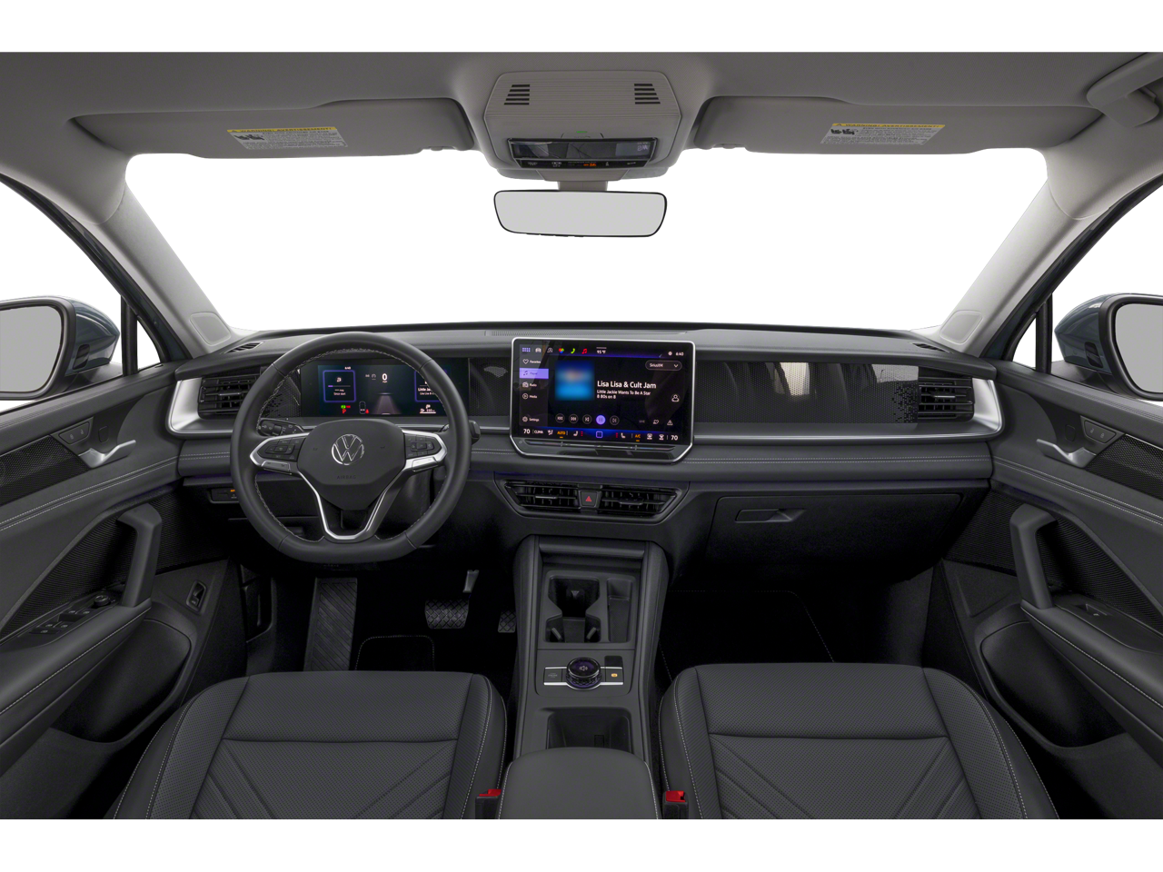 - MIB4 Composition Media Touchscreen w/AM/FM Radio -inc: WMA/MP3/FLAC player w/USB, 12.9" touchscreen multi-function center display w/backlit sliders, voice control, 6 speakers + center speaker (7 speakers total) sound system, capability for in-vehicle 4G LTE enabled Wi-Fi (cellular data plan required; includes limited trial), capability for connected vehicle services (capabilities for services vary; requires enrollment or subscription), Bluetooth® connectivity (for compatible devices), SiriusXM w/360L (w/3-month free trial subscription; 360L services require acceptance of Car-Net terms), App-Connect smartphone integration (w/Apple CarPlay, Android Auto and MirrorLink) via USB, wireless App-Connect smartphone integration (for compatible devices) w/multi-phone pairing capability, 45W fast charging (for compatible mobile phones and accessories) via USB in both rows and Qi wireless inductive charger, cooled, up to 15W (for compatible mobile phones and accessories) All connected vehicle services are subject to terms and limitations. Some services require a paid subscription. See dealer or vw.com/connected for important details.