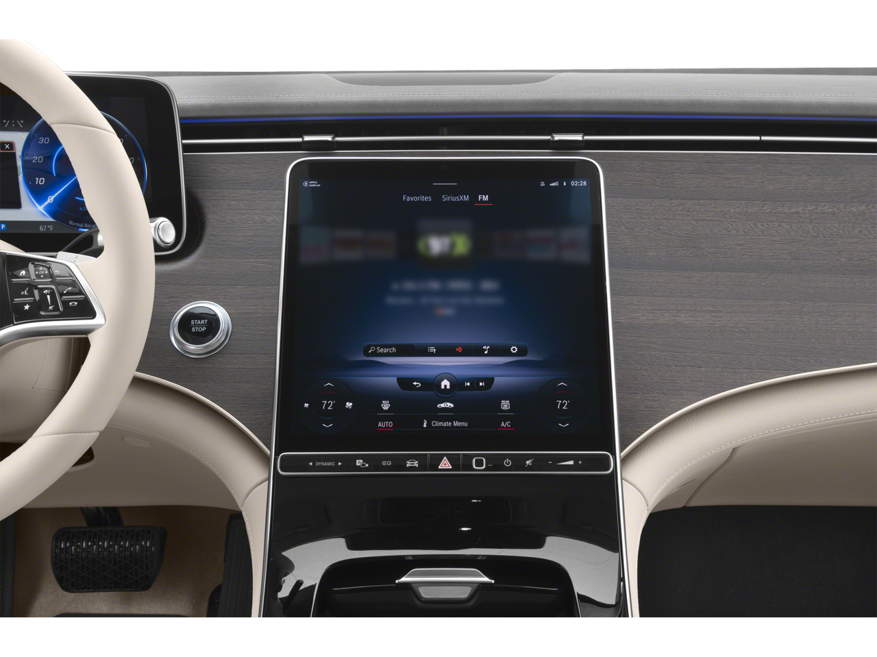 - Radio: Burmester 710W Sound System -inc: 15 speakers, 3D sound, EQ sound experience and sound personalization, MBUX multimedia system w/12.8" OLED portrait display & 12.3" driver display, SiriusXM satellite radio, MBUX profile authentication via fingerprint scanner, wireless smartphone integration (Apple CarPlay and Android Auto)